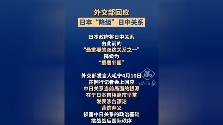 新版《外交蓝皮书》中,日本一改沿用十年的对华定位,将双边关系大幅降级,这是战后日本首次在官方文件中如此直白地拉开与中国的政治距离。